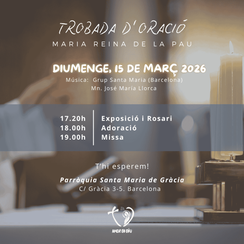 El diumenge 15 de març, l’església de Santa Maria de Gràcia de Barcelona obrirà les portes a la Trobada de Pregària de Maria Reina de la Pau.