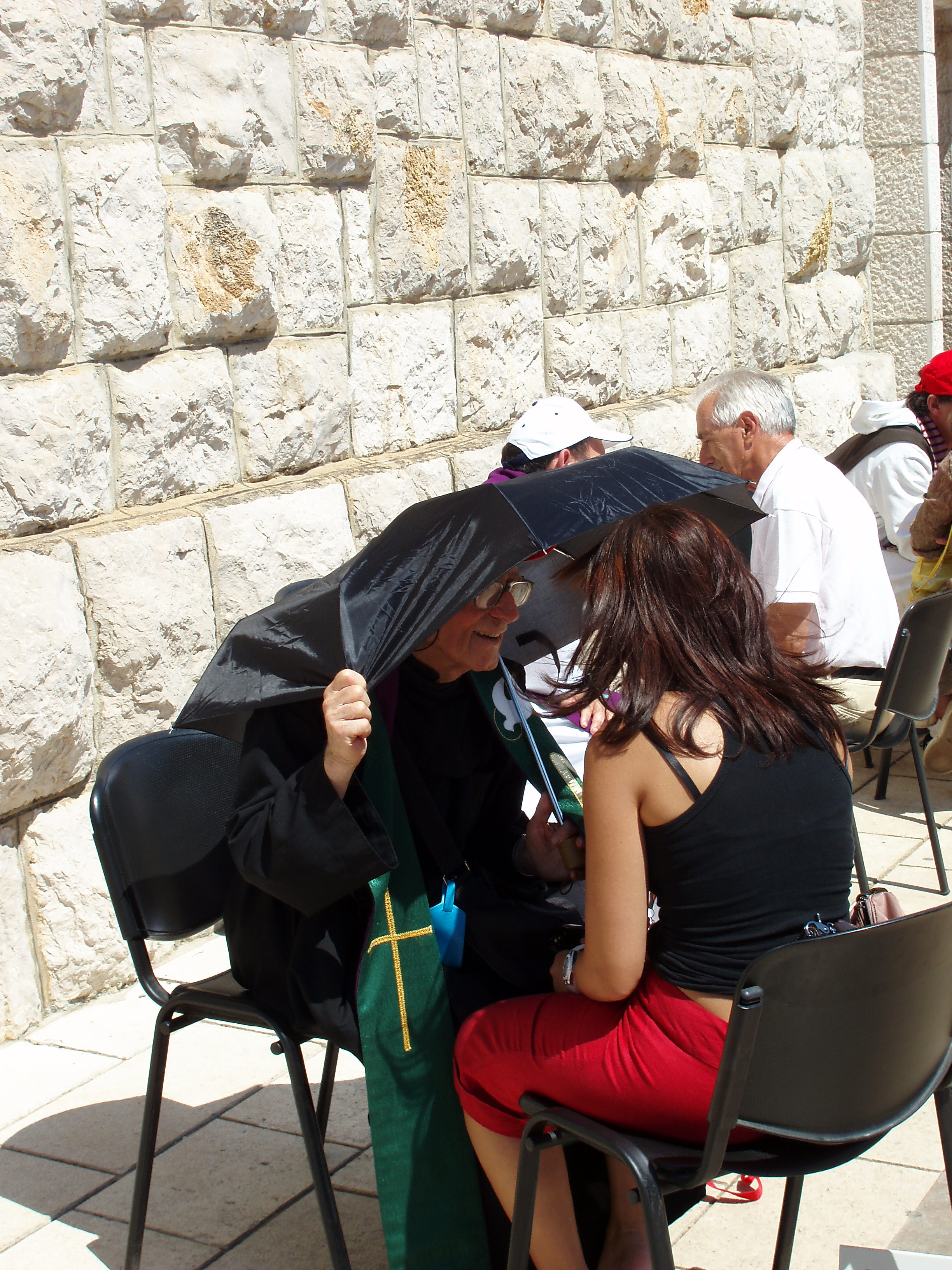 -Mi mujer se quiso confesar y fuimos hacia la parroquia. Cuando salió del confesionario fuimos dentro de la iglesia para oír Misa. Esto era durante el Festival de Jóvenes de Medjugorje y el día anterior habíamos oído Misa en la explanada, pero ese día decidimos quedarnos allí dentro, atrás del todo.