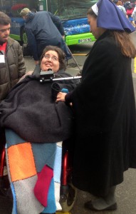 Me encontré entonces en el descansillo de una planta del hospital, donde una señora de unos cincuenta años, rodeada de un grupo de enfermos y enfermeras, les decía: “Gracias por lo que hacéis. Lo que hacéis vosotros no tiene límites. Por cuidarnos nos limpiáis hasta el pis. Lo sé porque yo anoche me lo hice encima y vino una de vosotras, una niña, una jovencita preciosa, y me limpió con tanto amor, con tanta ternura, que yo me di cuenta de que tal y como me limpiaba ella solo limpia una madre a su hija. Eso es amor, y ese amor solo se puede hacer así cuando se tiene a Cristo en el corazón. Por favor, no lo perdáis nunca”. Esa es la identidad del acontecimiento que vivimos en Lourdes. Cristo. Jesús de Nazaret. Es de Él de conde radica toda esta locura de amor que lleva a amar a unos y a otros no solo como a uno mismo, sino un poquito más. Es una locura que no quita la paz, sino que la regala. Es un locura de amor como lo fue la cruz. La clave me la dio Javier, mi jefe de equipo de Material, cuando le pregunté por los enfermos: «¿Los enfermos? ¡Joder, Suso, los enfermos son Cristo!». Me lo gritó porque yo peregriné a Lourdes contagiado por un mundo para el que es incomprensible que 400 personas, con su vida, con sus cosas, dediquen un puente tan cotizado como el de San Isidro para dedicarse en cuerpo y alma, dormidos y despiertos, mojados por la lluvia, secos de egoísmos, empapados de alegría, a 204 enfermos con patologías y minusvalías de todo tipo. Es una locura que al contrario que las demás, hace al mundo mejor. Una locura que da consuelo entre tanta pena, que da luz en la oscuridad. Es una locura de atar que de tanto amar se convierte en cordura. Esto es lo que son los miembros de la Hospitalidad, un atajo de cuerdos de remate. Otra campana, tercer round.