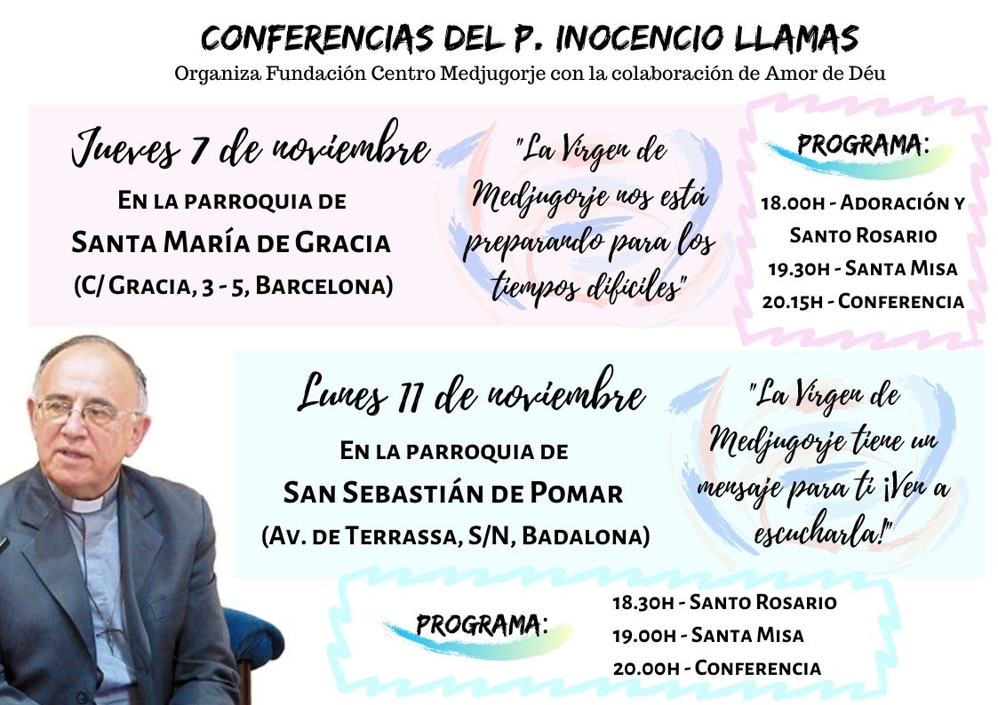 - 7 de noviembre: Conferencia «La Virgen de Medjugorje nos está preparando para los tiempos difíciles» (a las 20.15h en la Parroquia de Santa María de Gracia, Barcelona)