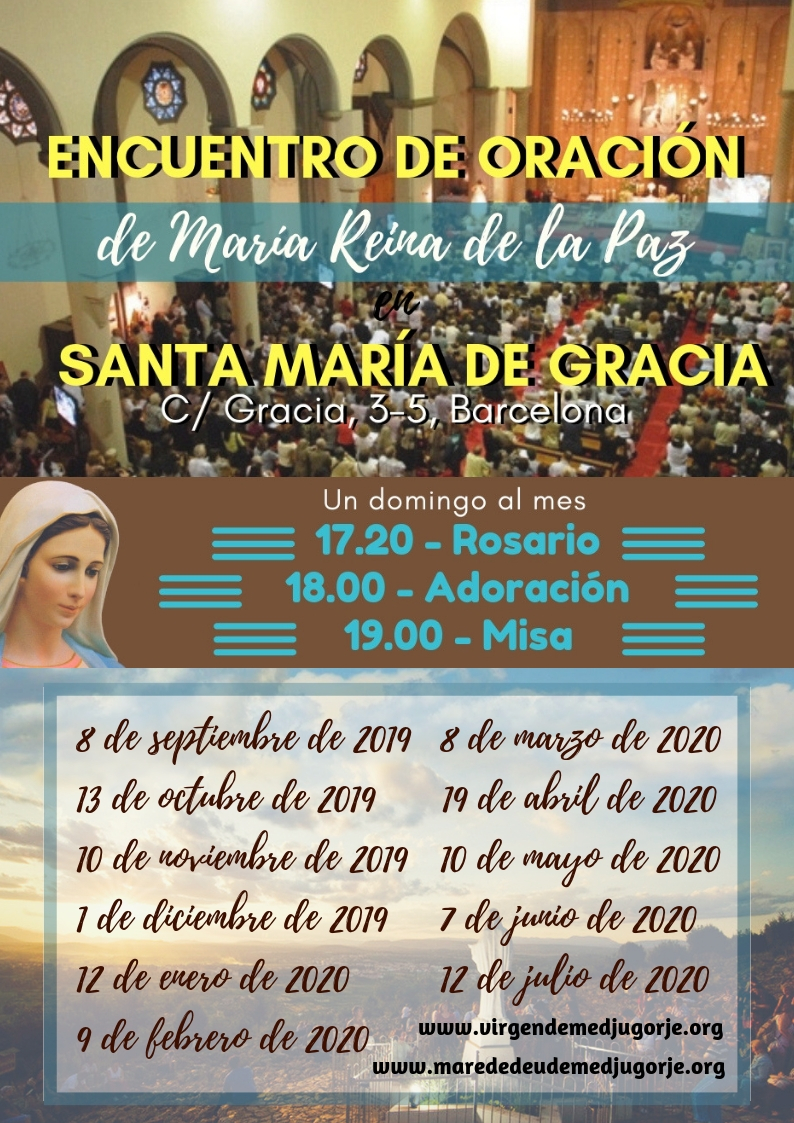 ¡Os esperamos en el encuentro de oración del día 8 de septiembre a las 17:20h en Santa María de Gracia! (C/ Gracia, 3-5, Barcelona)