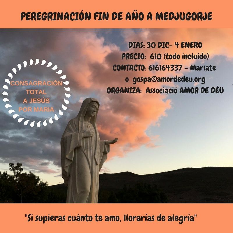 ¿Quieres vivir un fin de año diferente? La Associació Amor de Déu organiza del 30 de diciembre al 4 de enero una peregrinación a Medjugorje. Vivir esta época del año tan especial en la tierra de María es una oportunidad única para compartir con la familia y amigos.