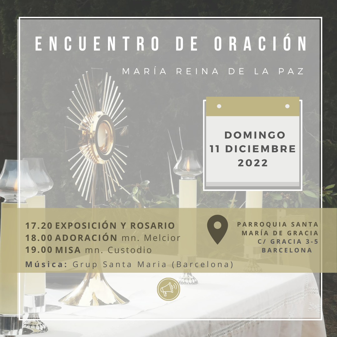¡Os esperamos en el encuentro de oración el domingo día 11 de diciembre a las 17:20h en Santa María de Gracia! (C/ Gracia, 3-5, Barcelona)