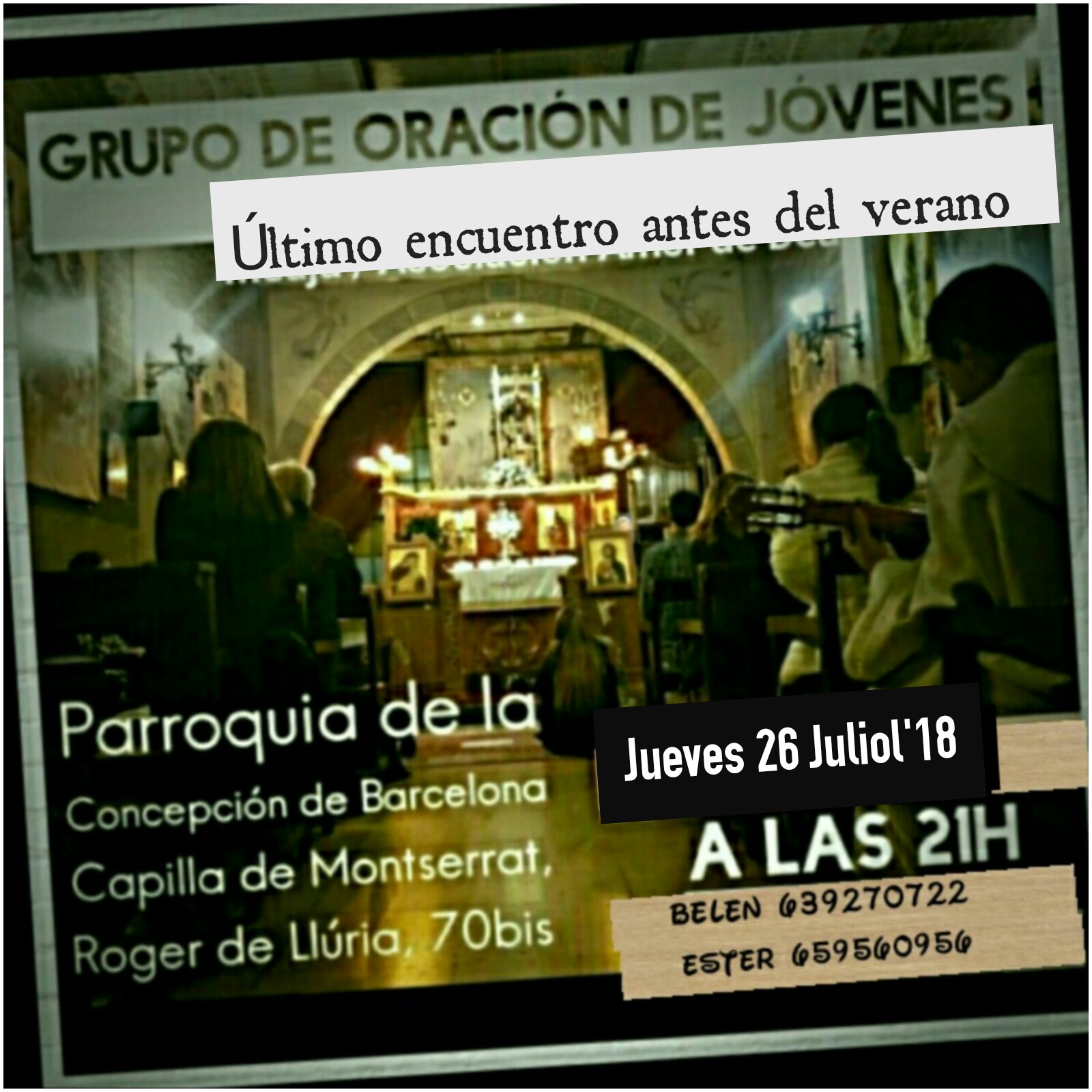 El próximo encuentro de oración de jóvenes, el último antes de las vacaciones, será el jueves 26 de julio a las 21.00h.