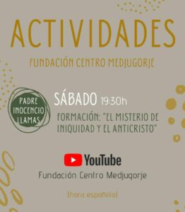 ◼️ Sábado 15 de agosto a las 19:30h (Hora España)- FORMACIÓN: El misterio de iniquidad y el anticristo (a cargo del Padre Inocencio Llamas)