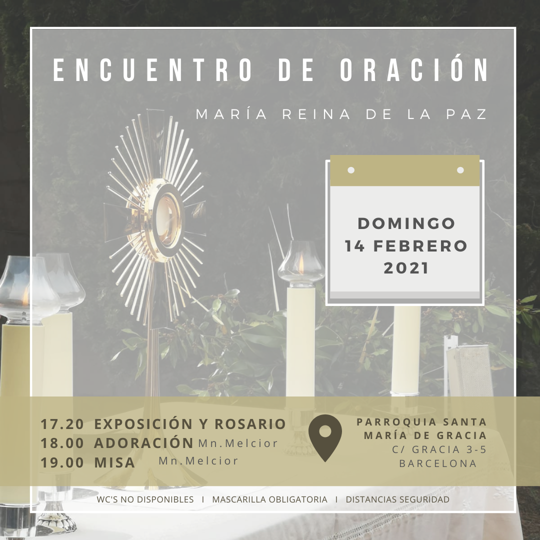 ¡Os esperamos en el encuentro de oración el domingo día 14 de febrero a las 17:20h en Santa María de Gracia! (C/ Gracia, 3-5, Barcelona)