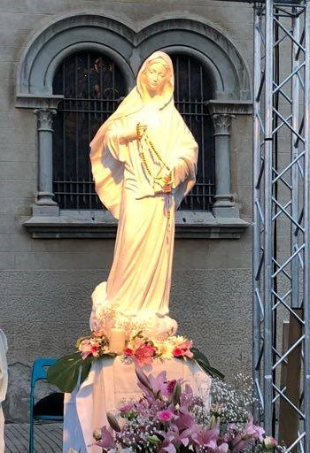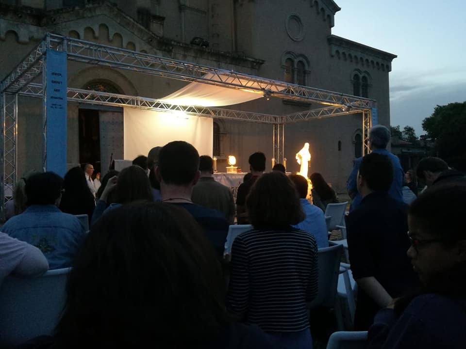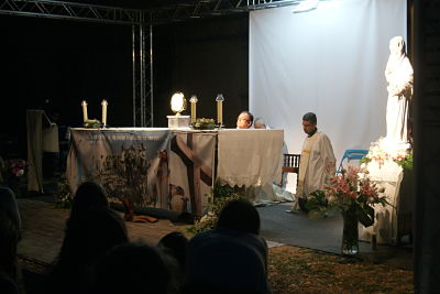 A las 19:30h empezó el rezo del Santo Rosario. Varios voluntarios lo dirigieron y leyeron una meditación para cada misterio. Entre misterio y misterio, disfrutamos de la música de Medjugorje, así como también de las letanías cantadas. A la vez, diferentes sacerdotes estaban disponibles al final de la explanada para confesar, entre ellos Mn. Josep Miquel Bombardó y Mn. Felio Vilarrubias.
