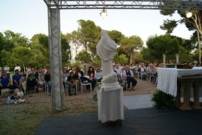 Precisamente con el fin de transmitir el espíritu medjugoriano, nuestros colaboradores y amigos se pusieron manos a la obra para lograr reproducir de la manera más fidedigna posible el programa vespertino de la parroquia de Medjugorje, ambientándolo en una explanada al aire libre rodeada de bosque, tal y como se vive durante los meses de verano en Medjugorje. Así, más de 300 personas entre familias, niños y jóvenes venidos de diferentes partes de España, se reunieron para revivir ese espíritu de oración y recogimiento.
