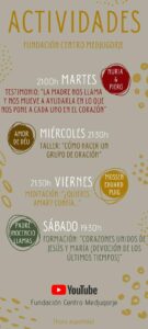 Las actividades se podrán seguir mediante el YOUTUBE de la Fundación Centro Medjugorje accediendo a los siguientes enlaces: