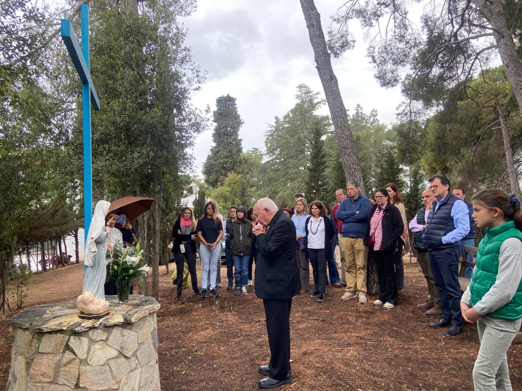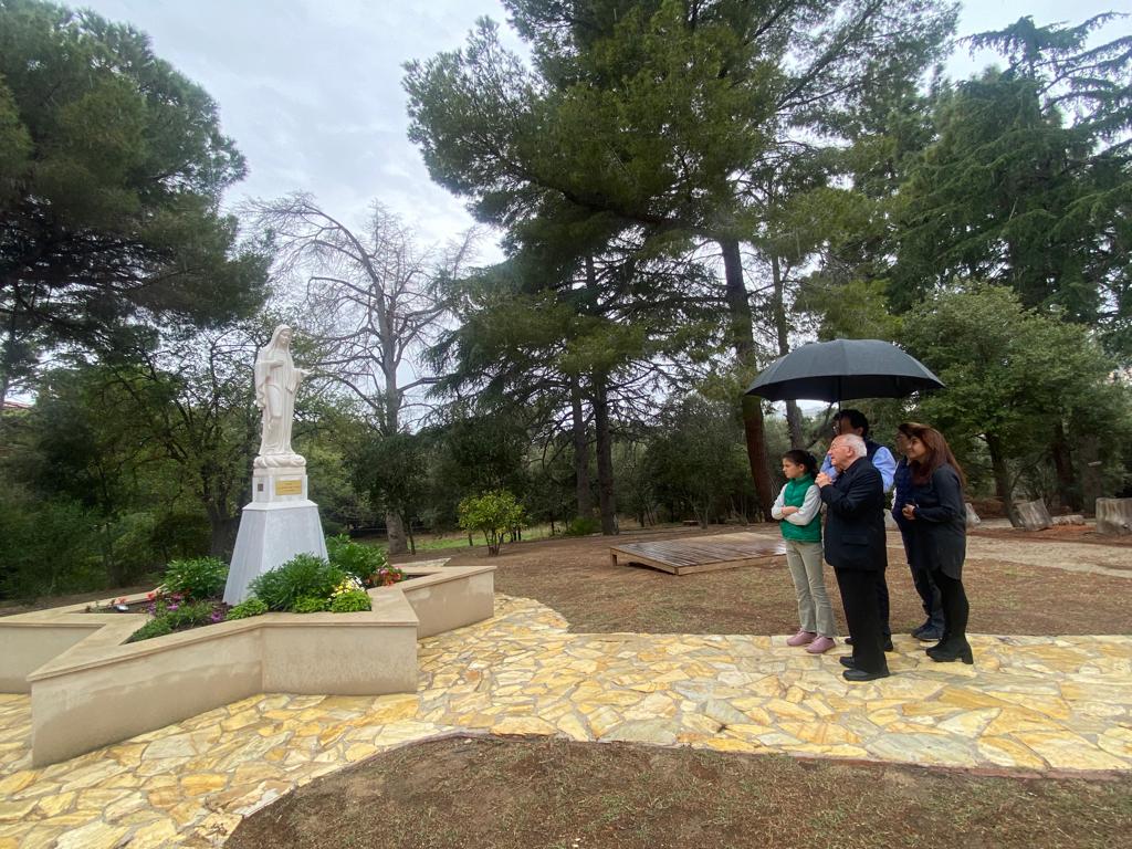 Alli, Mons. Aldo Cavalli, fue recibido por los voluntarios, por las personas que llevan peregrinos desde la Asociación Amor de Deu y por los colaboradores de las distintas áreas. Recorrieron juntos el lugar, le mostraron a Mons. Aldo la réplica de la cruz azul y de la imagen de la Virgen en la Colina de las Apariciones, donde rezó ante ellas con gran devoción, las bendijo y también la casa.