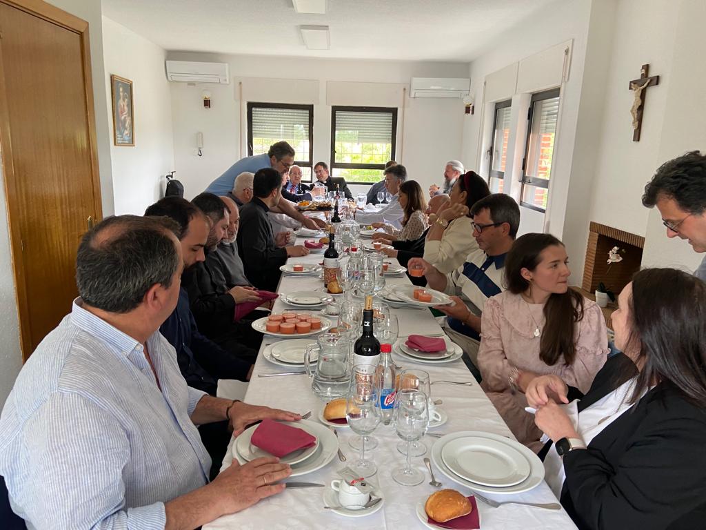 Tras llegar a Madrid, pudieron disfrutar de una comida en la Casa de Cristo Rey (Pozuelo de Alarcón) con un nutrido grupo de sacerdotes, entre los que se encontraban nuestro querido P. Agustín Giménez, el P. Álvaro Cárdenas y otras personas relacionadas muy estrechamente con Medjugorje, como el periodista Jesús García o la escritora María Vallejo-Nágera, además de L. Miguel Onieva, vice-presidente de la Fundación Centro Medjugorje y Charo Lafita; todo ello gracias a la perfecta organización de Fina.