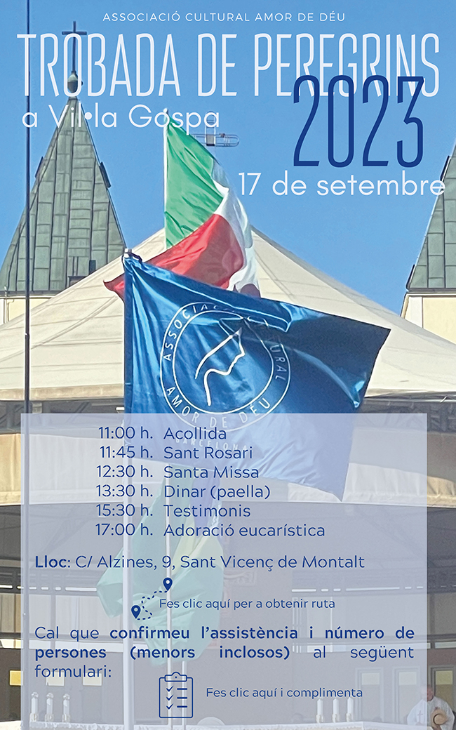 El encuentro tendrá lugar el domingo 17 de septiembre en Vil.la Gospa (adjuntamos link: https://apple.co/3QaQebq) y no sólo estará abierto a quienes hayan peregrinado a Medjugorje con Amor de Déu, sino también a todo aquél que desee acercarse a la espiritualidad de la Reina de la Paz.