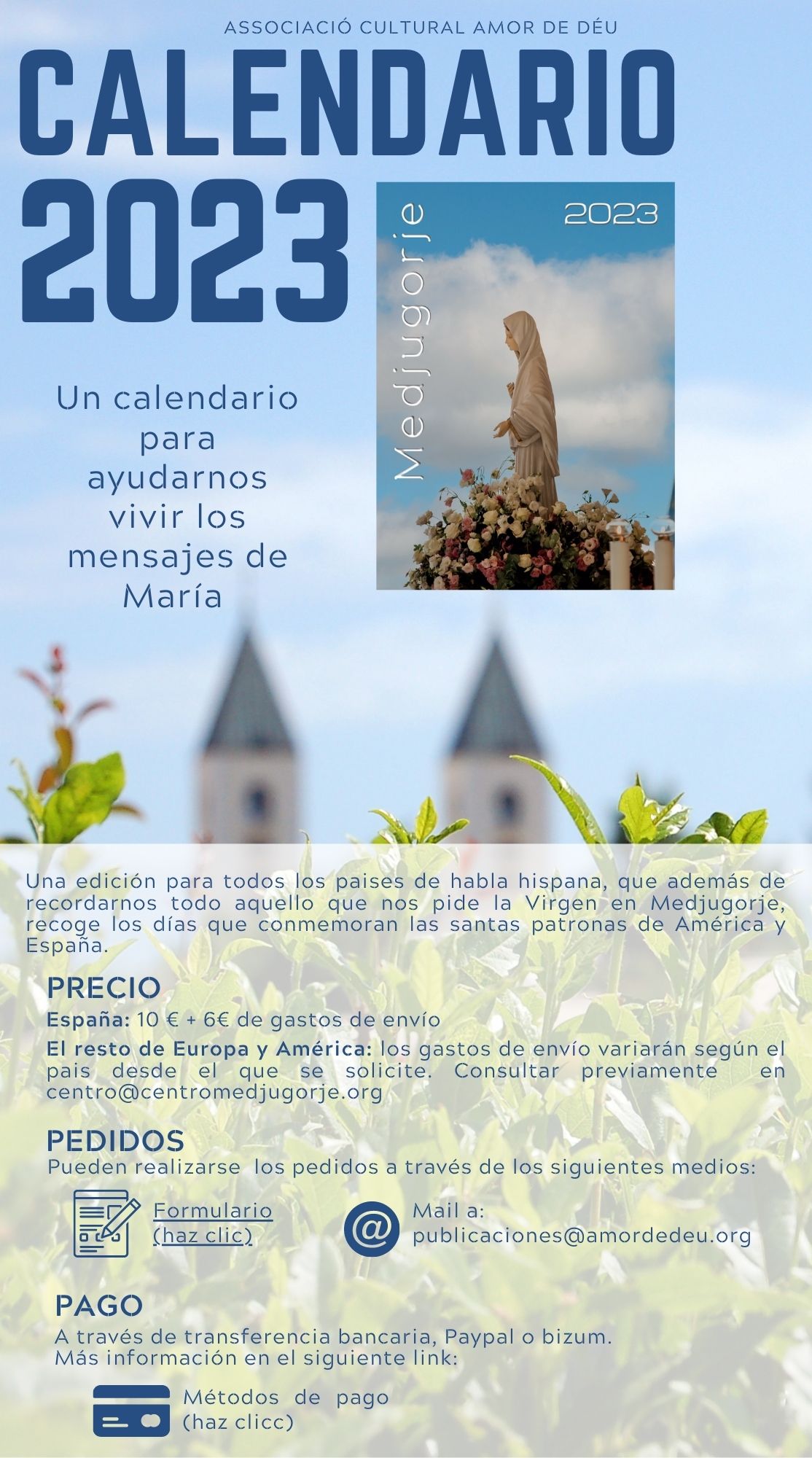 A través de transferencia bancaria, Paypal o bizum. Más información en el siguiente enlace: https://www.virgendemedjugorje.org/pago-calendario/