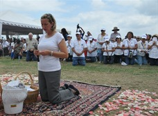 Con rosarios de diversos colores, los dedos entrelazados fuertemente y los ojos cerrados, centenas de fieles yacían sentados sobre el verde pasto del club La Costa, en el kilómetro 33½ (vía a la costa), mientras oraban para agradecer, según ellos, “el amor de la Virgen María”.