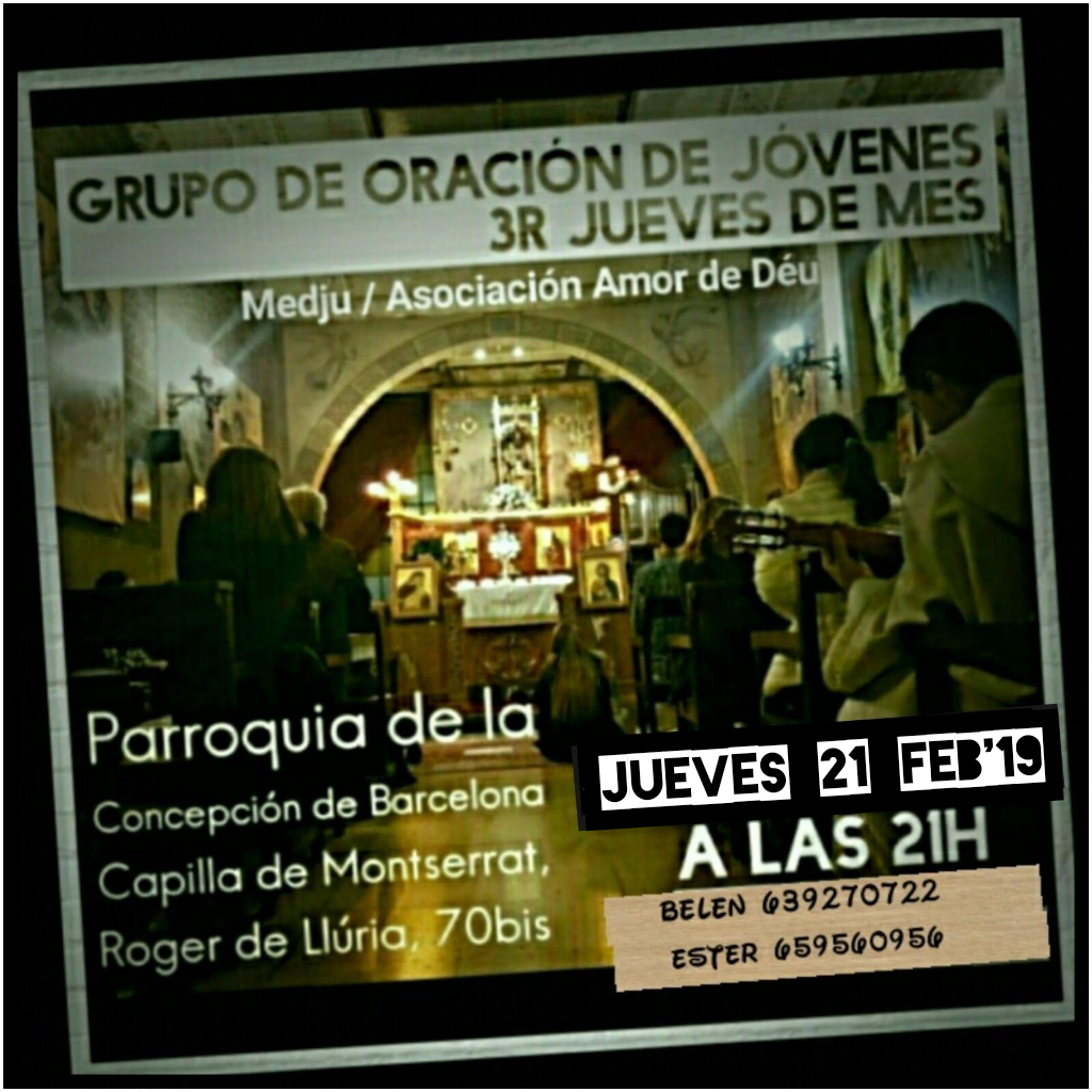 Una vez al mes los jóvenes adultos que han peregrinado a Medjugorje con la asociación Amor de Déu comparten una hora de oración frente al Santísimo. El grupo está dirigido por Mn. Salvador Juanola y está abierto a todos aquellos jóvenes adultos que hayan peregrinado a Medjugorje, lo vayan a hacer o sientan simpatía por la Virgen.