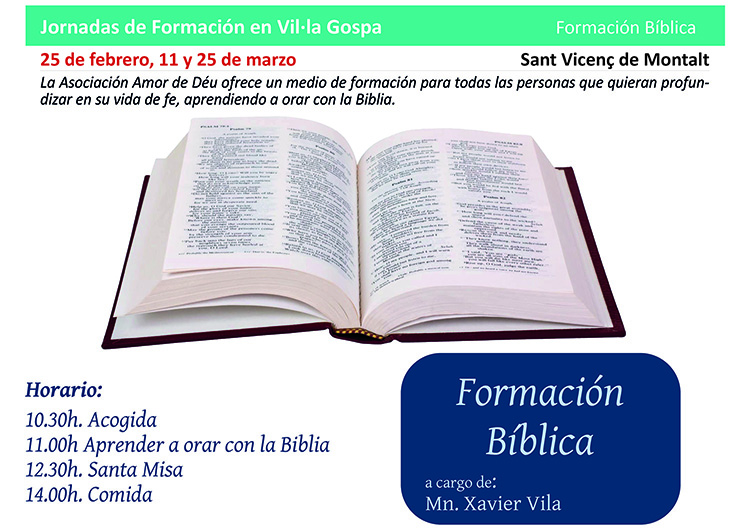 REZAR CON LA BIBLIA, por Mn. Xavier Vila, el próximo sábado 25 marzo en Vil.la Gospa (adjuntamos mapa) con el siguiente horario: