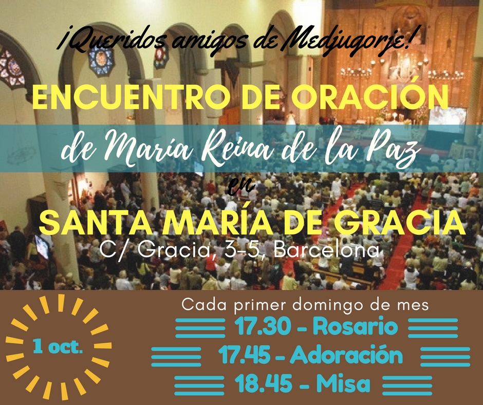 ¡Os esperamos en el sexto encuentro de oración el día 1 de octubre a las 17:30h en Santa María de Gracia! (C/ Gracia, 3-5, Barcelona)