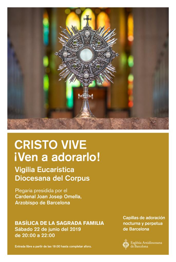 El Sr. Cardenal, Excmo. Sr Omella, con motivo de la festividad del Corpus Christi, convoca a toda la diócesis de Barcelona a una extraordinaria Vigilia eucarística en la basílica de la Sagrada Familia, el sábado 22 de junio 2019, de 20h a 22h. Adjuntamos carta del Sr. Cardenal Arzobispo.