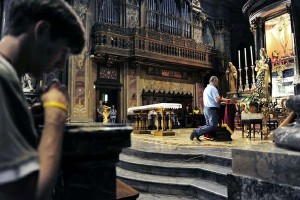 Parte de los fieles en la Basílica del Crucifijo.[/caption]