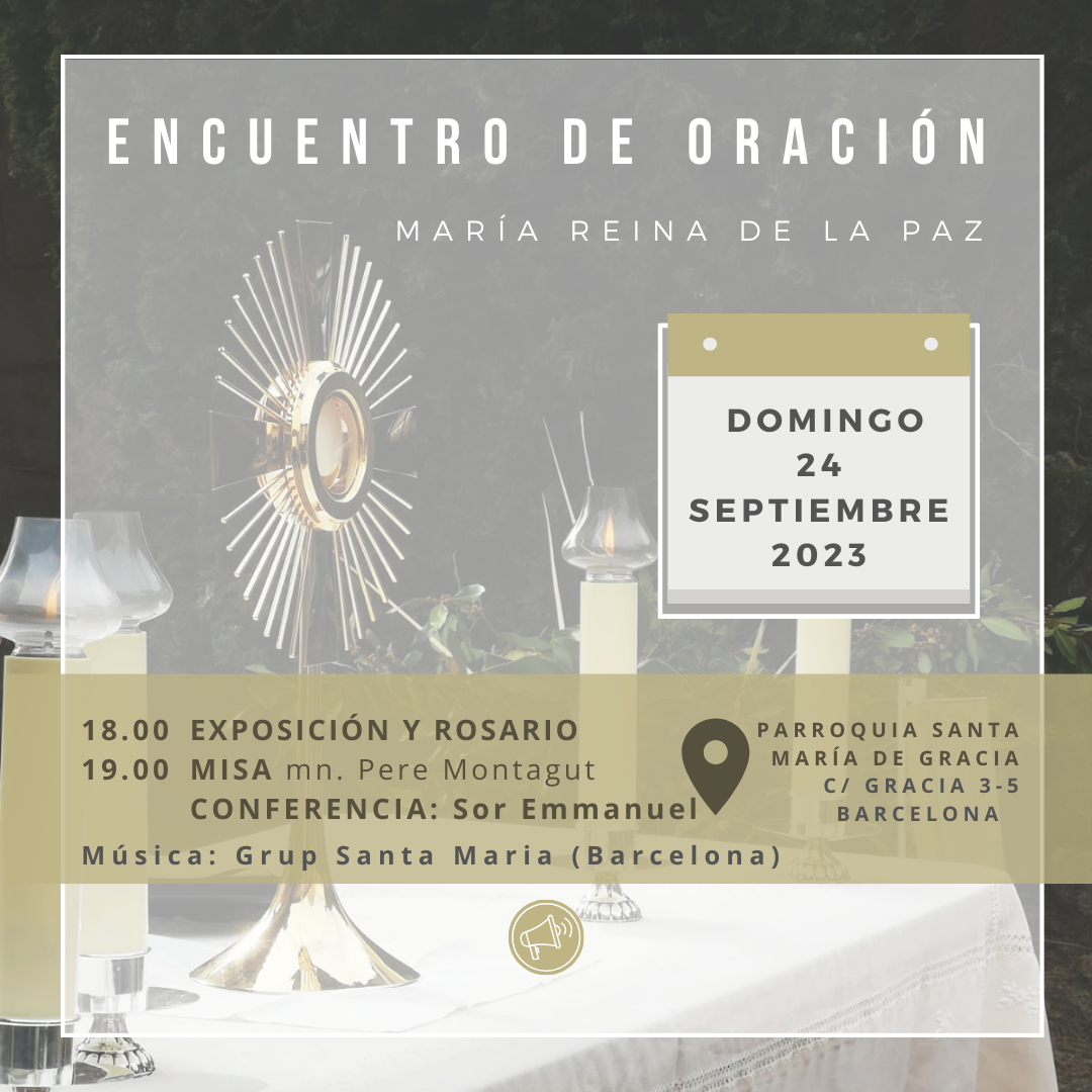 ¡Os esperamos en el encuentro de oración el sábado día 24 de septiembre a las 18:00h en Santa María de Gracia! (C/ Gracia, 3-5, Barcelona)