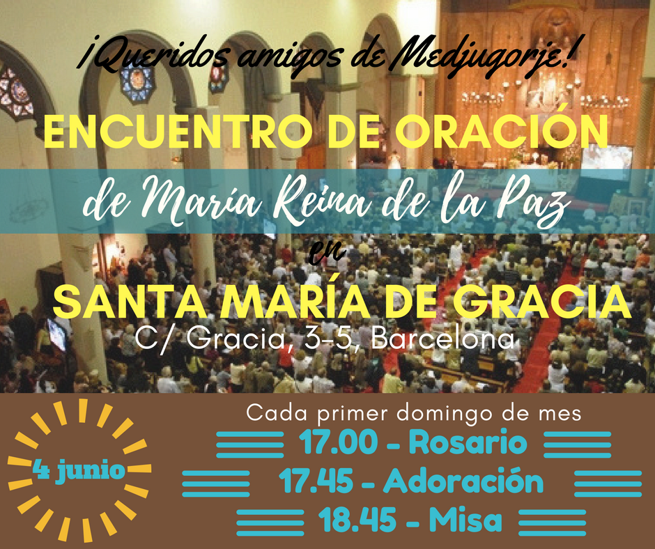 ¡Os esperamos en el tercer encuentro de oración el día 4 de junio a las 17:00h en Santa María de Gracia! (C/ Gracia, 3-5, Barcelona)