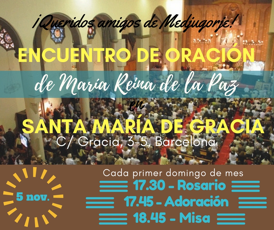 ¡Os esperamos en el séptimo encuentro de oración el día 5 de noviembre a las 17:30h en Santa María de Gracia! (C/ Gracia, 3-5, Barcelona)