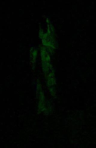 Esta foto es la que quizás hace entender mejor el fenómeno: la estatua emana una luz solo cuando la habitación esta oscura, como si fuera fluorescente. Pero a oscuras no puede ser una fluorescencia creada por el hombre como pasa en tantas otras estatuillas porque esta estatuilla tiene 30 años!!!