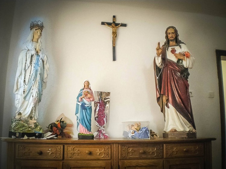 Siendo de principios de los 80, añado yo, es normal que la estatua sea una representación de la Virgen de Lourdes: la producción de estatuillas por parte de los artesanos locales con imágenes relacionadas con Medjugorge empezó años más tarde.