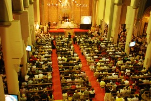 Sabemos que se consagraron 2.000 formas, muchos de nosotros tuvimos que comulgar con un trocito y eran muchos los niños presentes que no habían hecho la Primera Comunión, lo que nos lleva a pensar que alcanzamos la cifra de 2.300 asistentes.