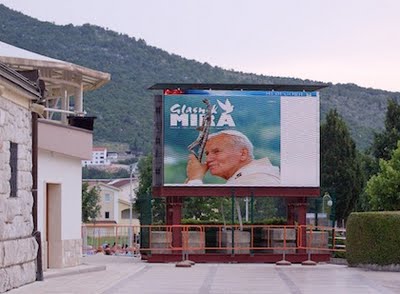 El servicio de una gran pantalla de información ya está vigente desde hace tiempo, desde el Festival de la Juventud del año pasado, y realmente atrae la atención de los peregrinos con detalles relacionados con eventos de la Iglesia y sucesos del pueblo. Se puede ver desde ambos lados y es particularmente beneficiosa para los peregrinos que buscan el programa de la tarde alrededor del altar exterior.