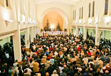La Adoración a Jesús en el Santísimo Sacramento del Altar comenzó a las 22 horas, y la Santa Misa, que, en latín, presidió el cardenal arzobispo de Viena, Dr. Christoph Schönborn, comenzó a las 23.15 horas. El cardenal Schönborn llegó a Medjugorje el lunes, 28 de diciembre, en una visita privada, y hasta el momento ha dirigido la Adoración en la parroquia de Santiago Apóstol y ha dado una catequesis. El programa de oración de la Noche Vieja se celebró en la iglesia parroquial, y fue transmitida en imagen y sonido a la Sala amarilla, la carpa verde y el espacio alrededor de la iglesia. Todo el programa fue traducido simultáneamente a muchas lenguas del mundo, y Radio “Mir” Medjugorje lo transmitió en directo. El programa de oración fue acompañado de música y cantos del coro y con la orquesta internacional que todos los años se reúne en esta ocasión en Medjugorje.