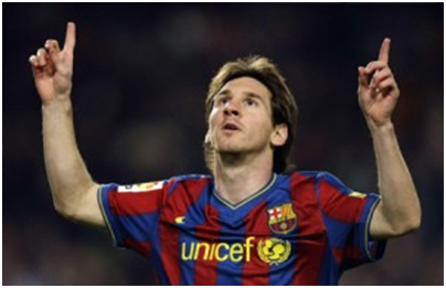 Lionel Messi da las gracias al Cielo por un gol con el FC Barcelona. El mejor jugador de fútbol del mundo es católico devoto y recientemente ha visitado Medjugorje para estar con el vidente Ivan Dragicevic.
