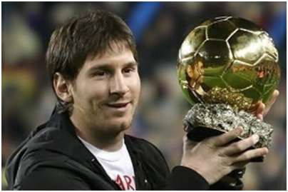 Lionel Messi levanta el trofeo de su tercero Balón de Oro como mejor futbolista del mundo del año. Nacido el 24 de junio de 1987 en Rosario (Argentina), vino al mundo el día del 6º aniversario de la primera aparición en Medjugorje. Con el FC Barcelona, donde llegó a los 13 años, el argentino ha ganado 3 títulos de campeones de liga de la UEFA, 5 ligas españolas, 1 Copa del Rey y 2 copas del mundo de clubs. Con la selección argentina ha ganado el torneo de fútbol de los Juegos Olímpicos de 2008 y una copa del mundo sub 20. Desde su debut a la edad de 17 años, en octubre de 2004, Messi ha marcado la extraordinaria cifra de 169 goles en 205 partidos con el FC Barcelona.