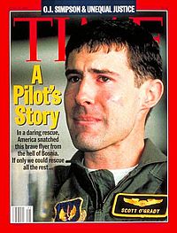 Scott O’Grady, un piloto de guerra de la OTAN cuyo avión fue derribado en Bosnia en junio de 1995, fue rescatado tras una exitosa operación en la que formaron parte más de 40 aviones y helicópteros con 100 soldados y algunos de los mejores estrategas militares de la OTAN.