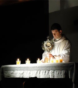 Fuimos entonces a reunimos con Padre Ghislain, pocas horas antes de su partida, para conversar sobre lo que aún es lejano o poco frecuente para muchos católicos… descubrir el misterio que contiene la Adoración eucarística y el participar de la Eucaristía con fe.