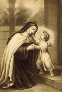 Un día, santa Teresa de Ávila (PS 2) se dirigía a la capilla de su convento, el Carmelo de la Encarnación, y estaba por subir la escalera. Levantó la mirada y vio a un niñito de una belleza deslumbrante, de pie en el último peldaño. Muy sorprendida, extendió sus brazos hacia él sin decir palabra. Se preguntaba cómo habría podido ingresar a aquella parte privada de la casa. Fue el Niño el que rompió el silencio y le preguntó: