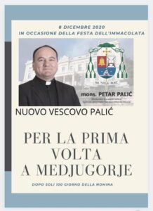 PS 3. El nuevo obispo de Mostar, Mons. Petar Palic vino a Medjugorje el 8 de diciembre para celebrar la misa de la Inmaculada Concepción y el templo estaba archi colmado. La misa fue seguida por una cena muy fraterna con Mons. Hoser y los Franciscanos, para alegría de todos.