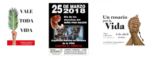 PS 3. La Argentina fue el primer país en reconocer el Día de los Derechos del Niño por Nacer el 25 de marzo de 1998, sumándose luego Uruguay, España, México, Austria, Eslovaquia, Chile, Ecuador y Cuba. Este 25 de marzo se realizará una marcha multitudinaria en defensa de la vida a las 15, partiendo desde Plaza Italia hacia la Facultad de Derecho de Buenos Aires, marcha que se replicará en distintos puntos del país. La Comisión Episcopal de Comunicación de Laicos y Familias propone en este Domingo de Ramos, coincidente con el día del Niño por nacer, que en todas las procesiones de las parroquias del país se incluya un gesto de compromiso por la Vida, utilizando la frase: VALE TODA VIDA. Igualmente, el lunes 9 de abril, fiesta trasladada de la Anunciación, rezaremos el tradicional Rosario por la Vida en la Catedral Primada de Buenos Aires a continuación de la Santa Misa de las 18, frente al Santísimo Sacramento. Invitamos a las distintas parroquias, capillas, oratorios y demás asociaciones de fieles a unirse en oración en sus lugares de origen. Pongamos la vida de los niños por nacer bajo la protección de nuestra querida Madre, la Virgen María.