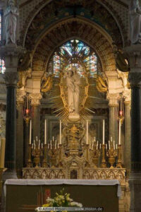 Durante una escala, fui a Lyon y entré a la basílica de Fourvière. Pensé: “¡Olala, este es el templo de Babilonia! ¡Velas y estatuas por todas partes!” Me detuve frente a una estatua muy hermosa de la Virgen María, Nuestra Señora de Fourvière, y le dije con un tono bastante severo: “Señora, no la conozco, sepa que que mi hija tiene un serio problema en el oído y tendrá que ser operada. Tiene 5 años. Bueno, usted es judía, y a los judíos les gusta el trueque. Sane a mi hija y por mi parte prometo entregarle mi vida a su Hijo. ¿Trato hecho?