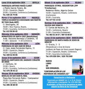 PS 1. Desde el 1 de septiembre, el programa vespertino de la parroquia adoptó el horario de invierno: Rosario a las 17 h, Misa a las 18 h, seguida de oraciones de sanación y el tercer rosario. Emisión en 93.3 FM