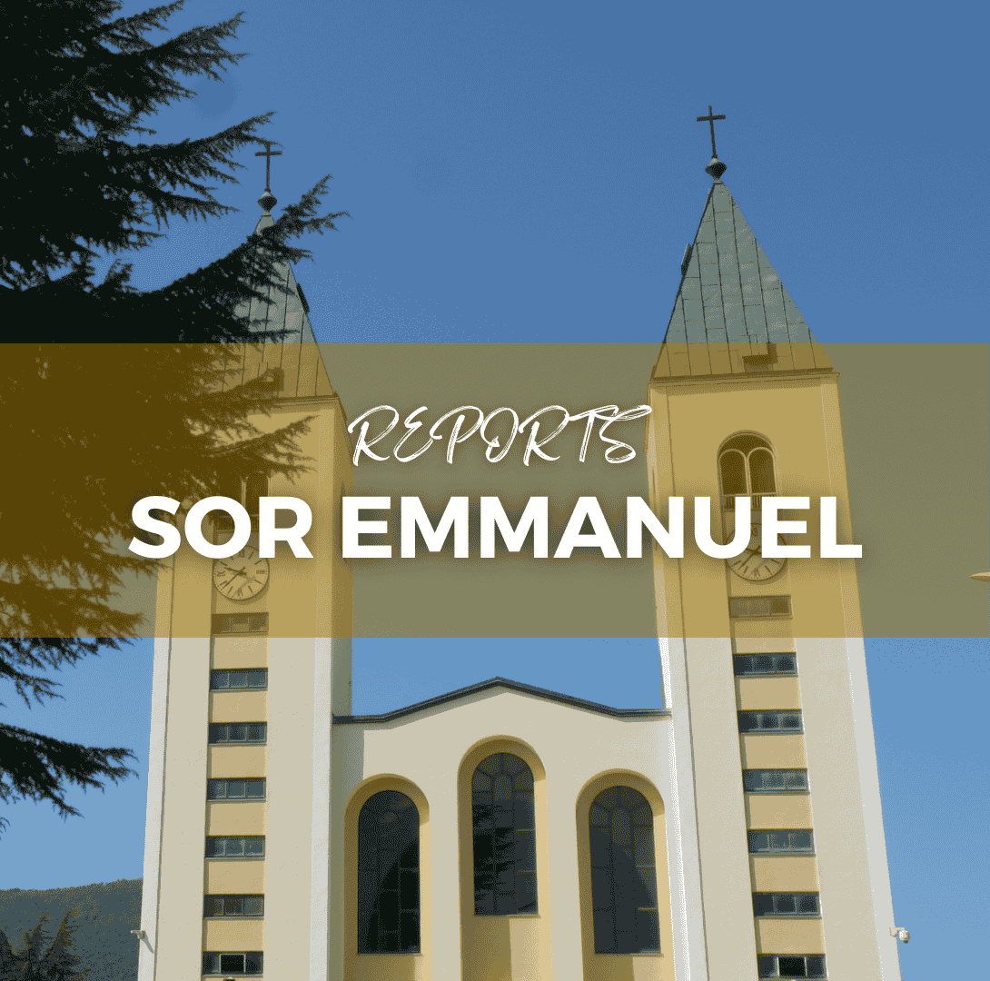 España: hijosdemedjugorjeespana@gmail.com Tel (+ 34) 676 05 95 94 Estados Unidos- www.sremmanuel.org (para material en inglés) – info@fcpeace.com Tel (+1) 305-412-1700 – www.fcpeace.com