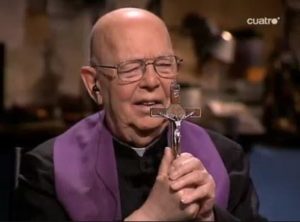 Don Ambrogio: Oh, María, te agradecemos por habernos dado el Rosario, y por continuar a invitarnos a rezarlo en todos los lugares donde Tú apareces; te agradecemos también por estas palabras de Belzebú en este exorcismo que yo, tu sacerdote, estoy realizando con la ayuda y colaboración de seis de mis asistentes que están rezando a mi lado.