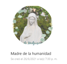 Diariamente a las 15:30 hora argentina (20:30 hora europea), podemos participar del Santo Rosario en vivo y en español, sumándonos a Madre de la humanidad: https://chat.whatsapp.com/DEzZ7TkdzbW14ToQcdfBZk
