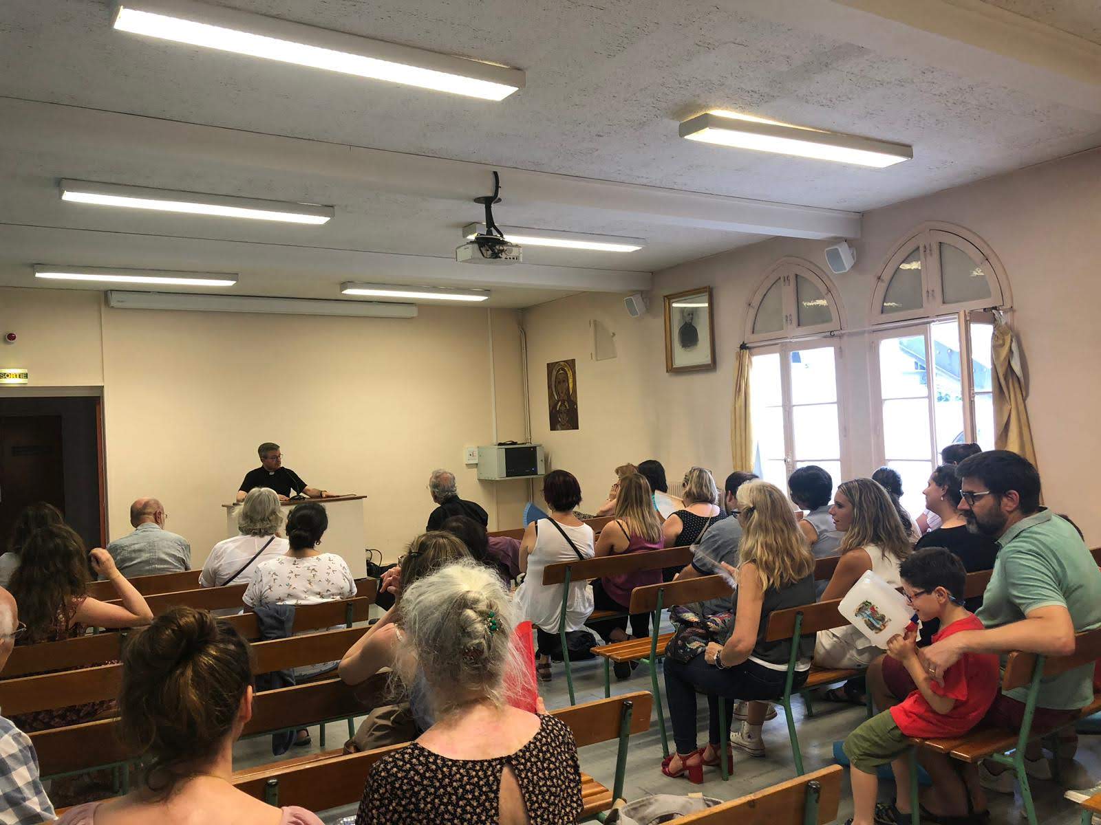 El P. Josep Maria Jané nos acompañó en este retiro para dirigir la parte de las actividades programadas desde la asociación. Así, el viernes, a la llegada de los peregrinos a Lourdes, presidió la Adoración al Santísimo en la iglesia de la residencia donde nos alojábamos. A la mañana siguiente, el grupo asistió a la primera meditación de los mensajes de la Virgen, la cual estuvo relacionada con los ejercicios espirituales de San Ignacio de Loyola. Tras finalizar la meditación, tuvo lugar la Santa Misa.