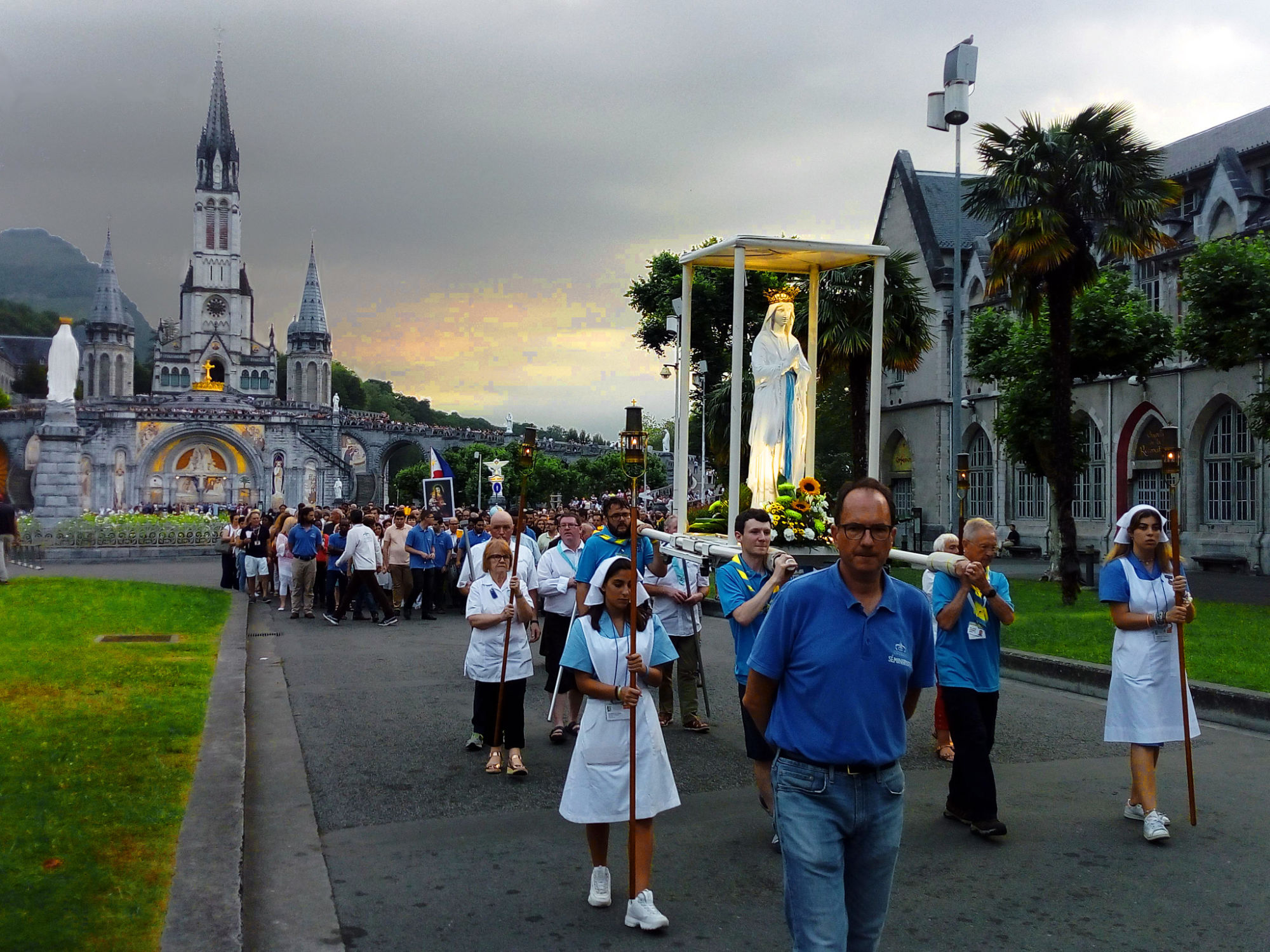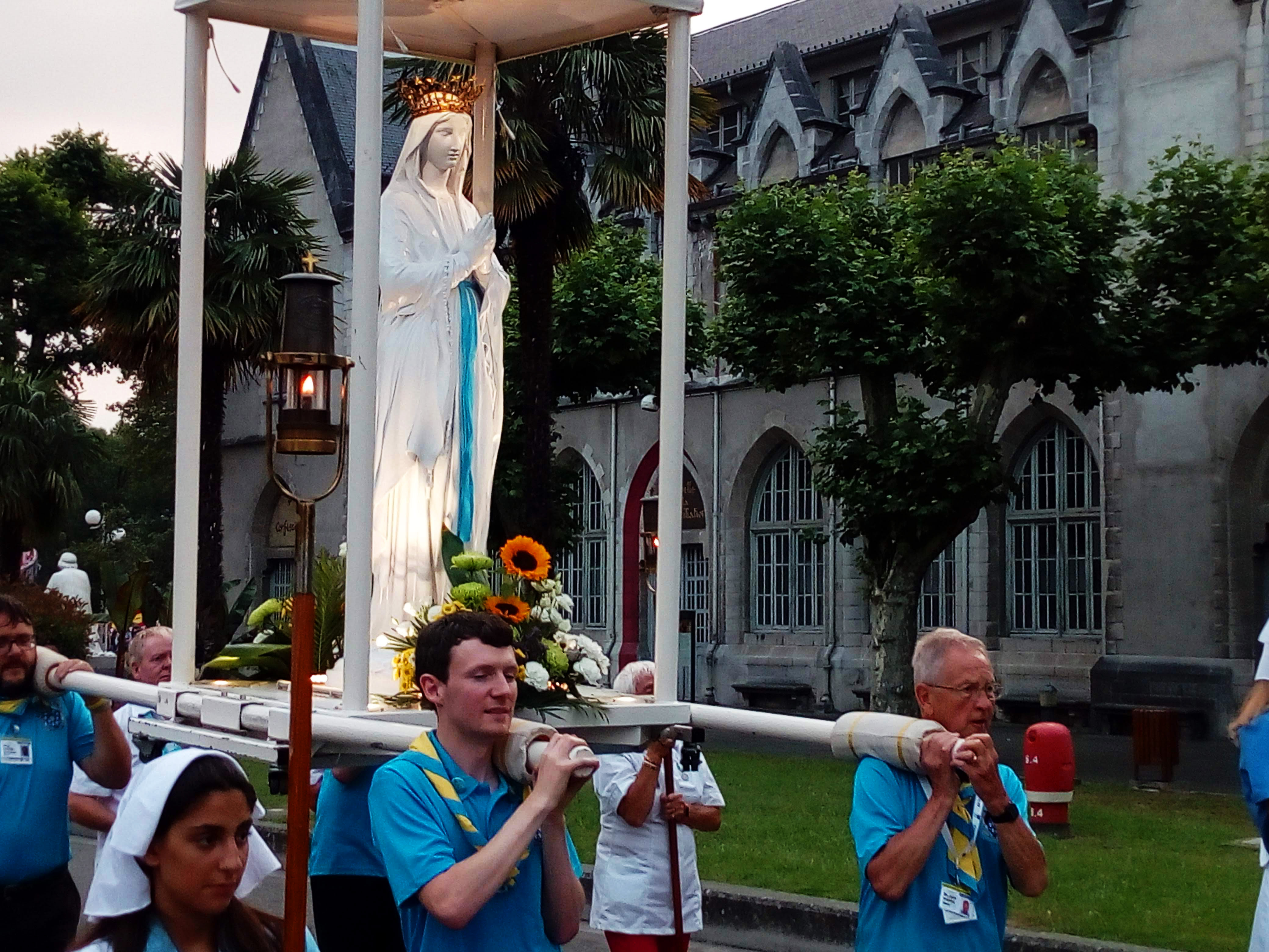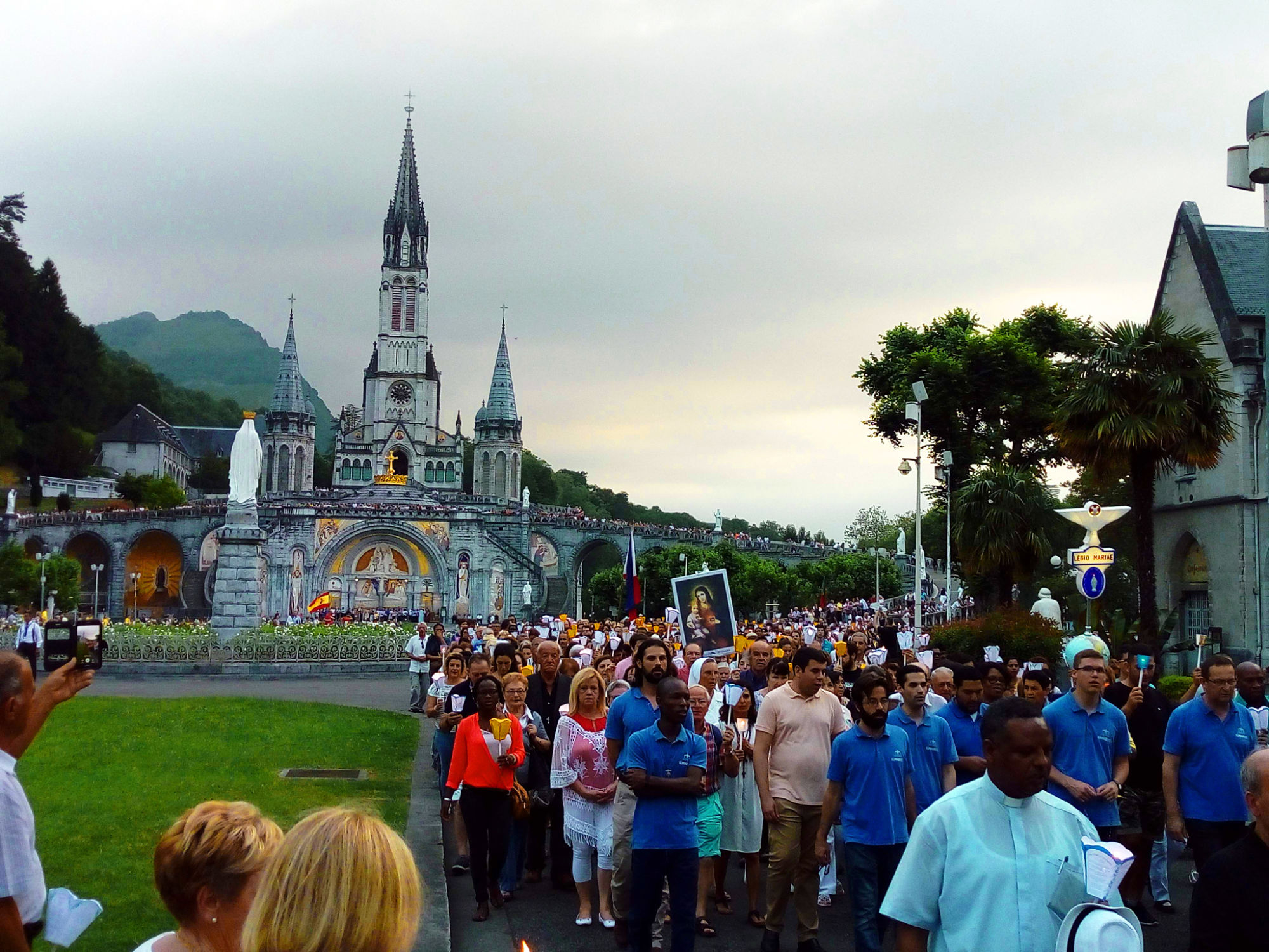 El programa del día finalizó con la procesión de las antorchas. Fue realmente emocionante ver cómo cientos de enfermos, peregrinos y voluntarios siguieron con velas a la Virgen cantando y rezando el Rosario.