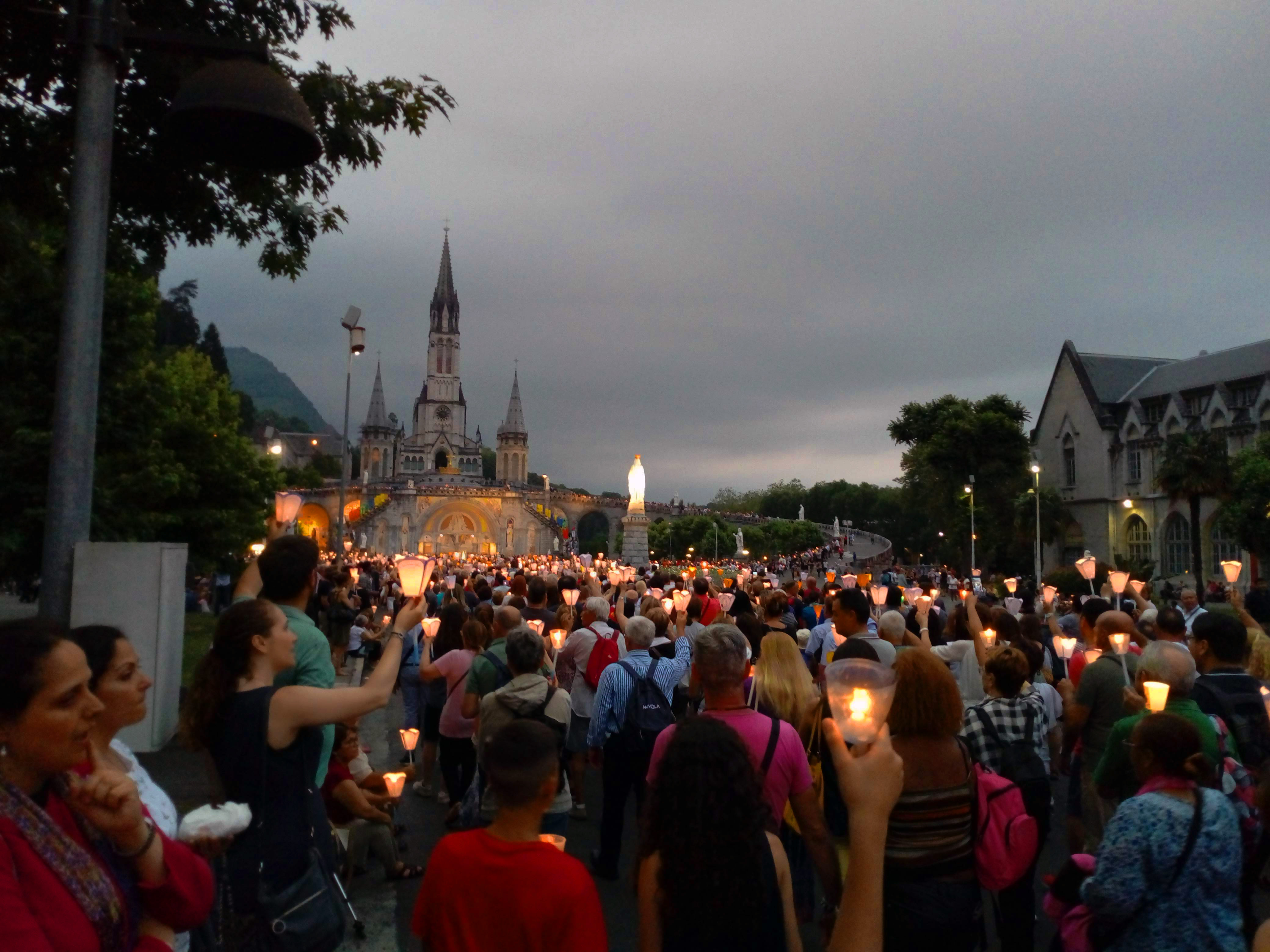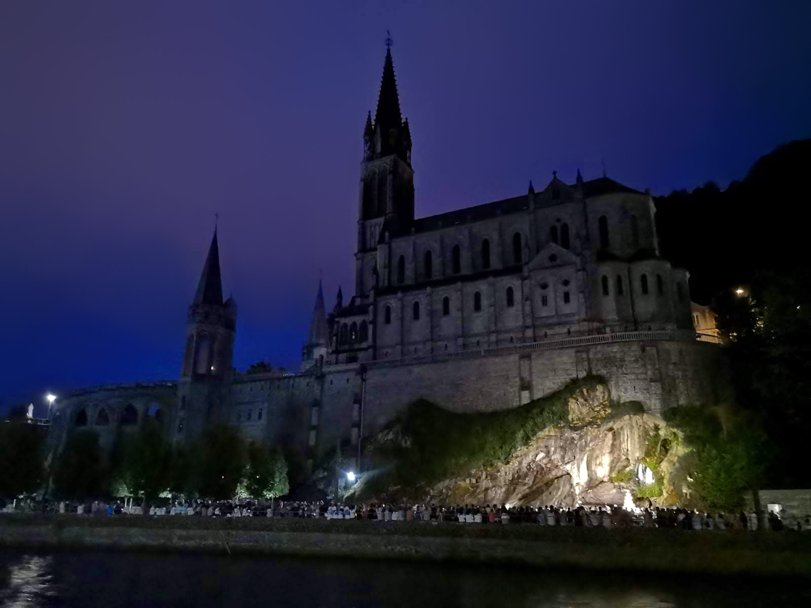 Después aún pudimos tener un rato de oración en la cálida noche de Lourdes antes de volver a la residencia.