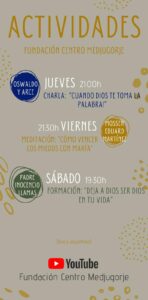 Las actividades se podrán seguir mediante el YOUTUBE de la Fundación Centro Medjugorje accediendo a los siguientes enlaces: