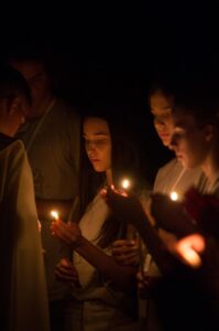 Los jueves a las 21 Fray Boris ofm anima un rosario; la velada continúa con una adoración meditada.