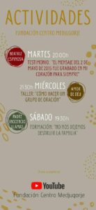 Las actividades se podrán seguir mediante el YOUTUBE de la Fundación Centro Medjugorje accediendo a los siguientes enlaces: