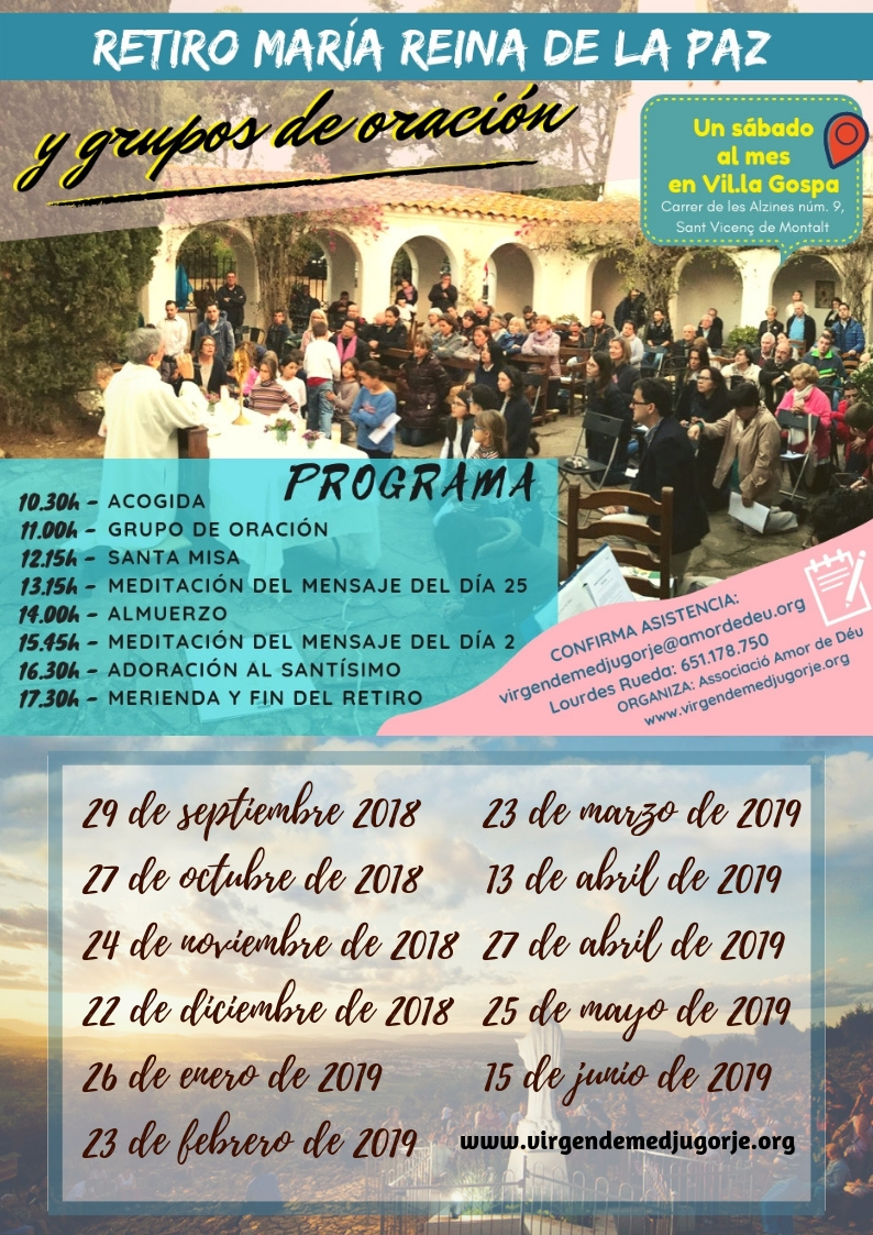 Rogamos confirméis vuestra asistencia antes del 26 de abril, al e-mail virgendemedjugorje@amordedeu.org o bien enviando un whatsapp a Lourdes Rueda al teléfono 651.178.750.